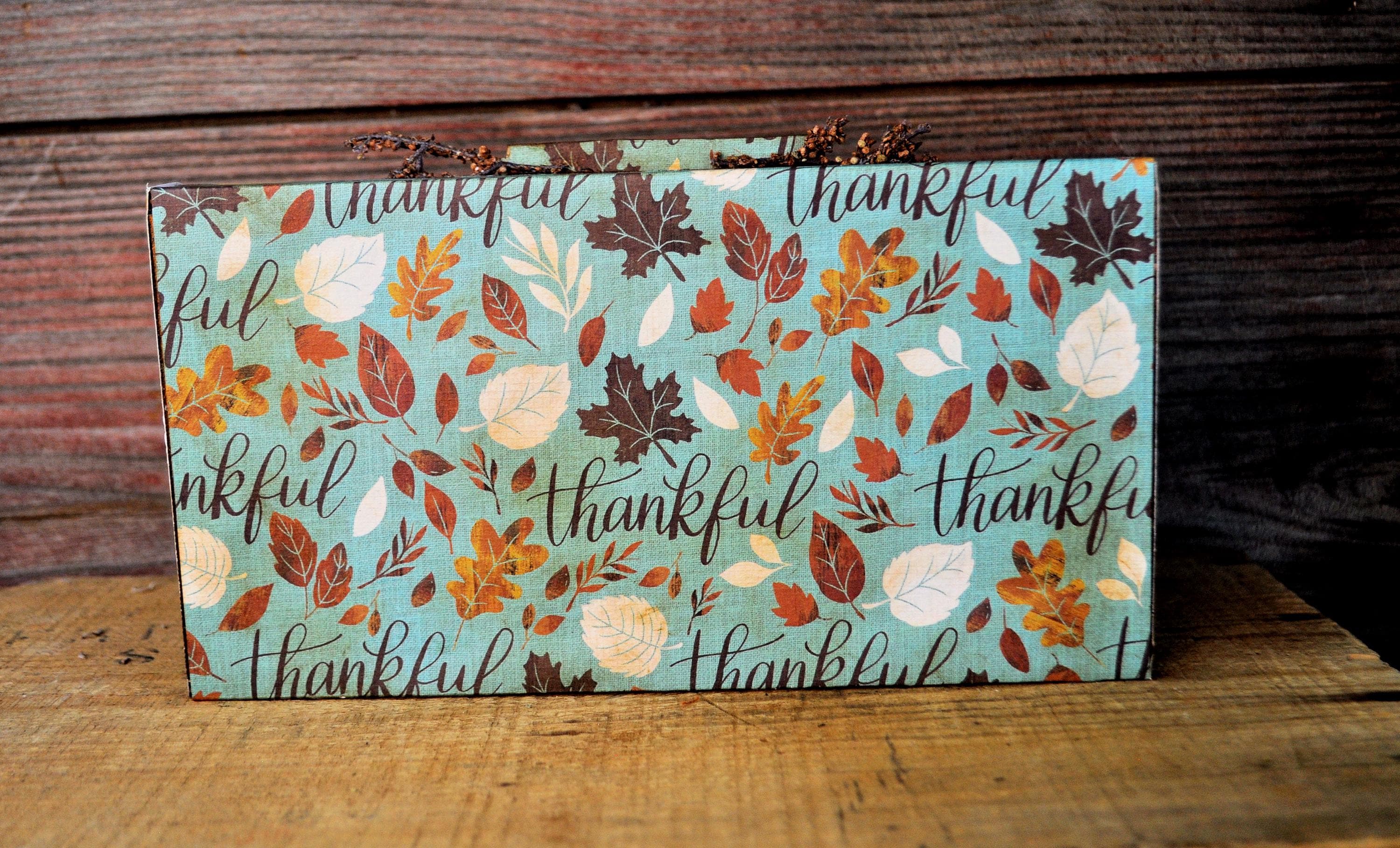 This Thanksgiving box is ready for immediate shipment to add personality to your Thanksgiving & Fall decor!